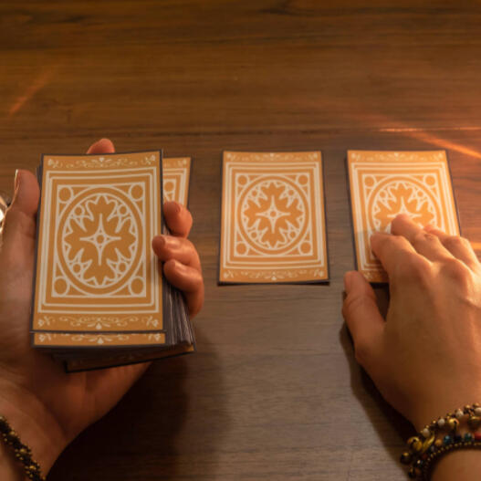 Standard reading using 3 tarot cards, performed intuitively; no oracles or charms.